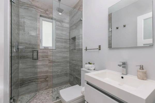 Solución de problemas de fontanería, renovación de azulejos y sanitarios para un baño funcional y limpio.